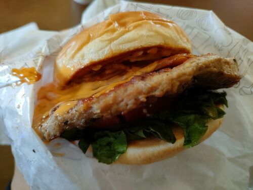 「モスのとびきりバーガーが、新しくなりました。その名も「新とびきりバーガー」。何度も試作を重ねた100%国産牛使用のパティ。とびきりな肉感とうまみが、たちまちお口に広がります。モスの新定番。ついに登場です。」とのこと。またまた鴻ノ巣店で…