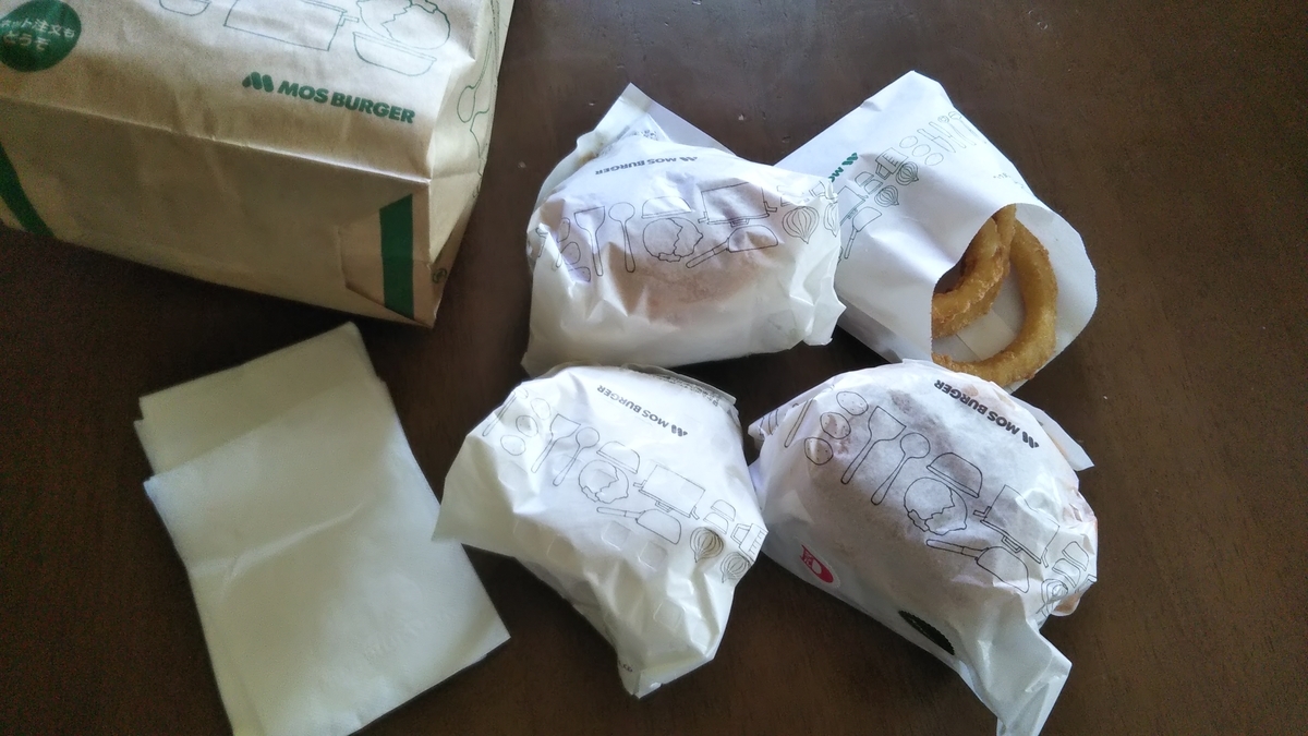 コロナの緊急事態宣言で、このところ外食を控えていますが、テイクアウトは止められません。今回はモスバーガーでテイクアウト注文しました。
