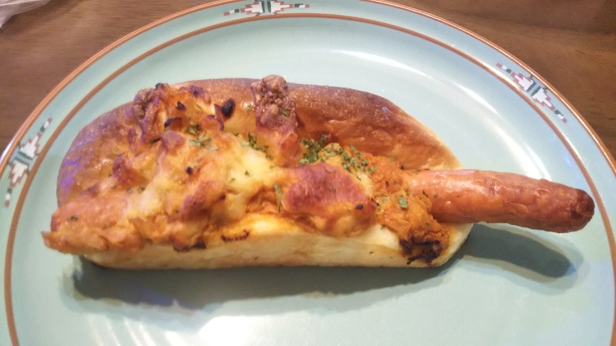 ガッツリ系の惣菜パンもあるようです。豚肉とチーズを一緒に揚げています。辛くないサルサソースみたいな、トマトペーストのソースがかかっていました。