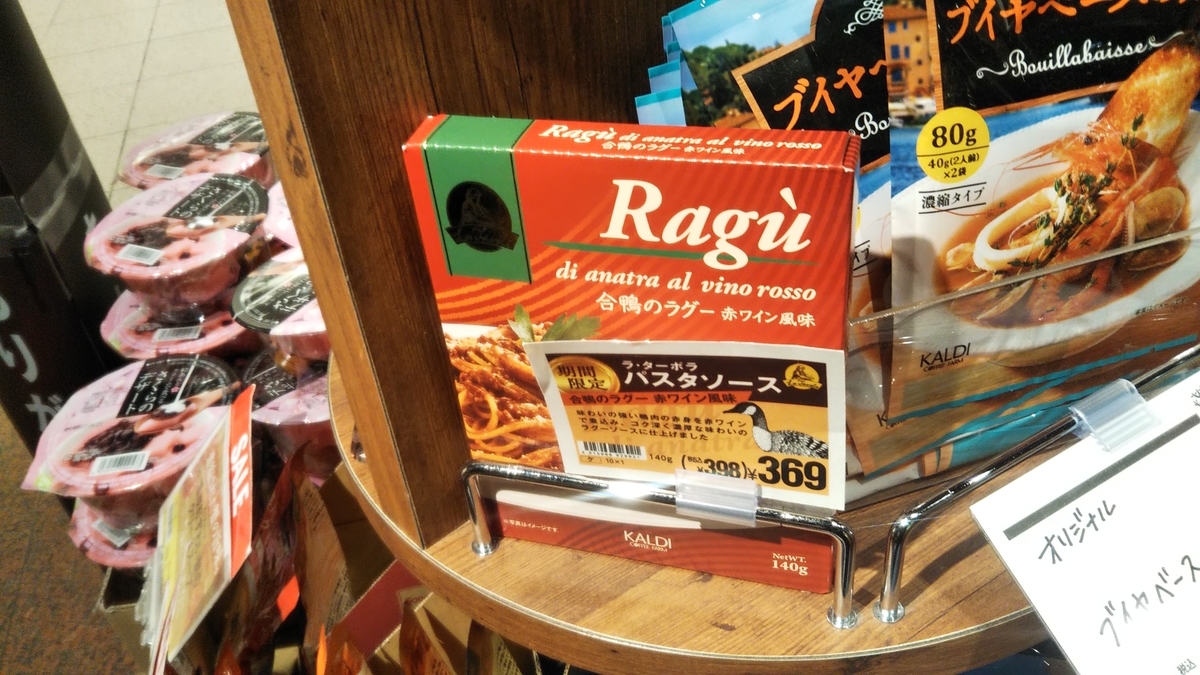 このブログでKALDI商品紹介の第32弾です。今回は「合鴨のラグー赤ワイン風味 パスタソース」です。
