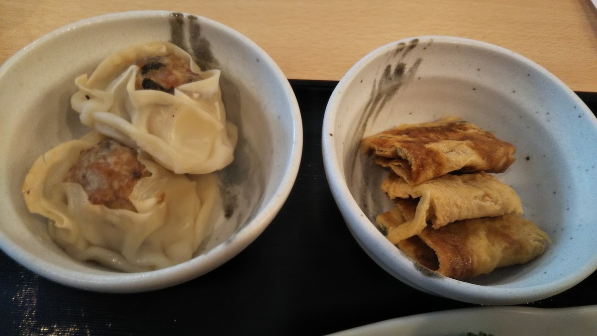 ↑左が「鶏肉と大葉の自家製しゅうまい」、右が「ネギ玉子」