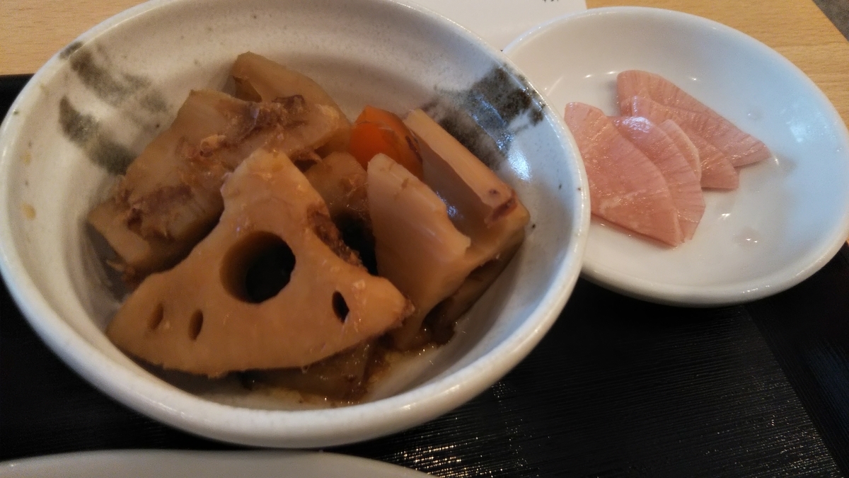 ↑左が「れんこんのおかか煮」、右は漬物