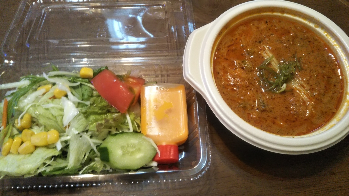 ↑野菜カレーセット(750円→前回貰ったサービス券で50円引きの700円になりました)