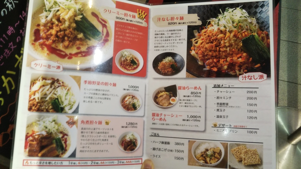 この中からオススメの1つである「クリーミー担々麺」を注文しました。