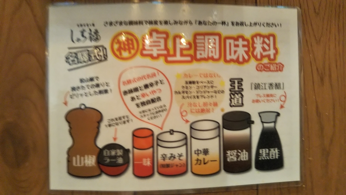 ↑卓上にはいろんな調味料がありますが、今回は何も使わず食べました。