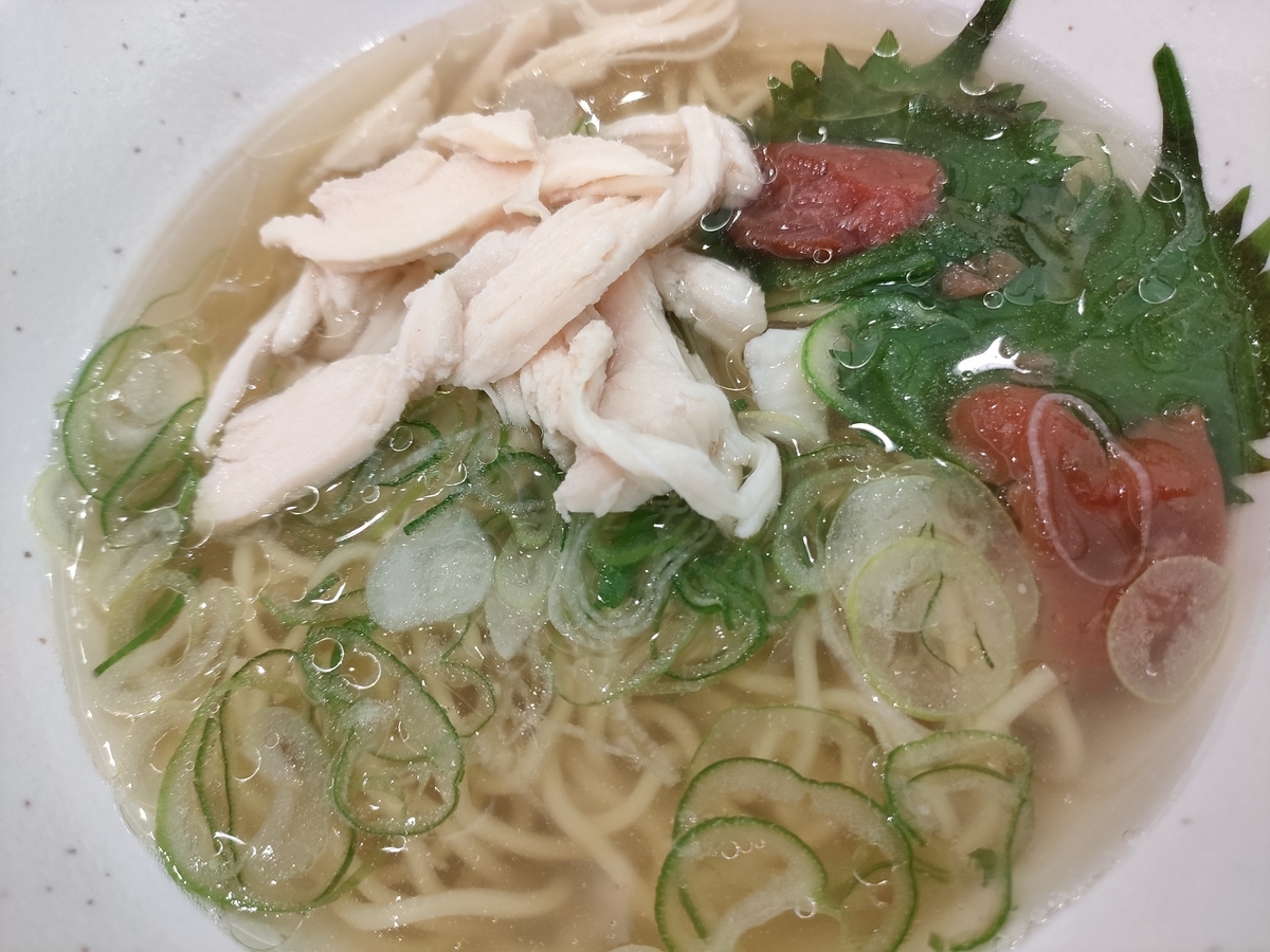海老チリ定食と迷いましたが「選べる麺と点心セット」にしました。「しっとり鶏の梅塩ラーメン」が美味しそうに見えました。鶏チャーシューだか鶏ハムが大きく、梅の組合せが新鮮に感じました。