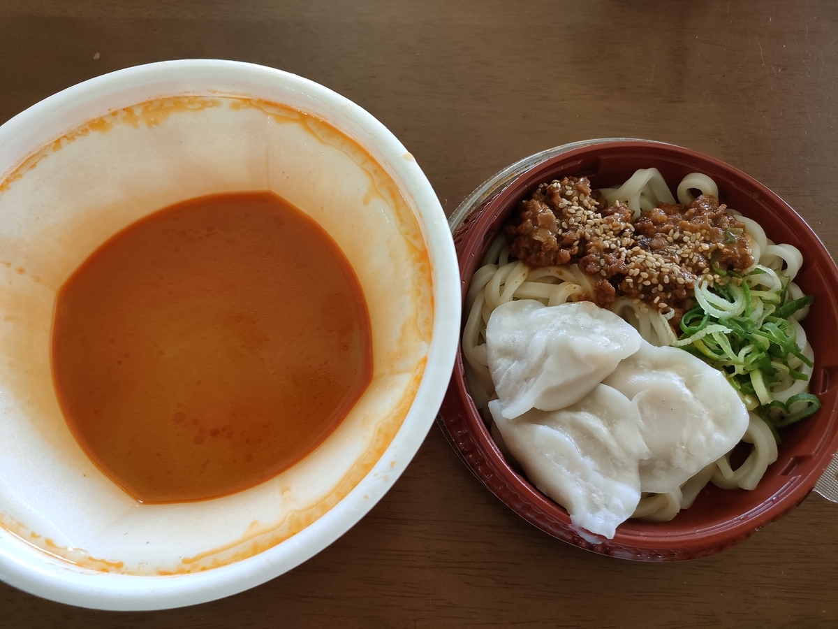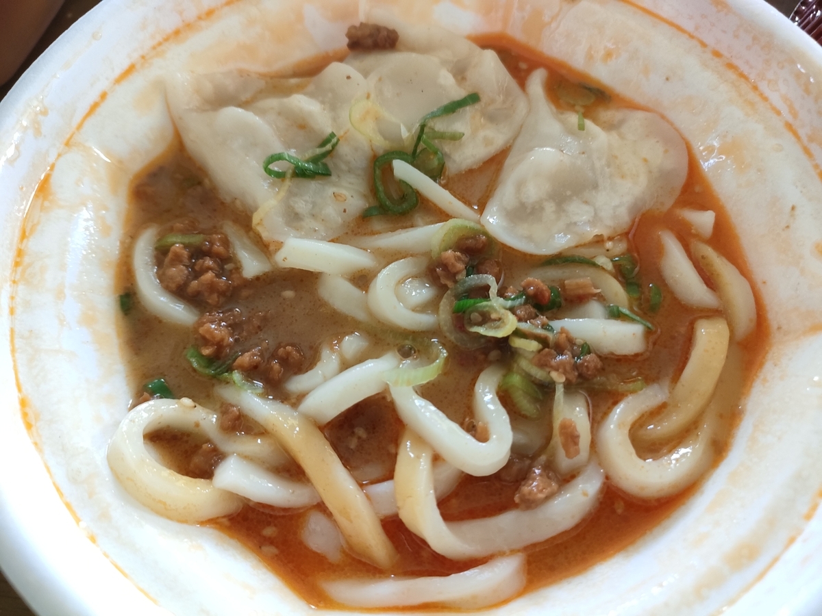 なか卯から新商品「水餃子担々うどん」が販売されたのでテイクアウトしました。